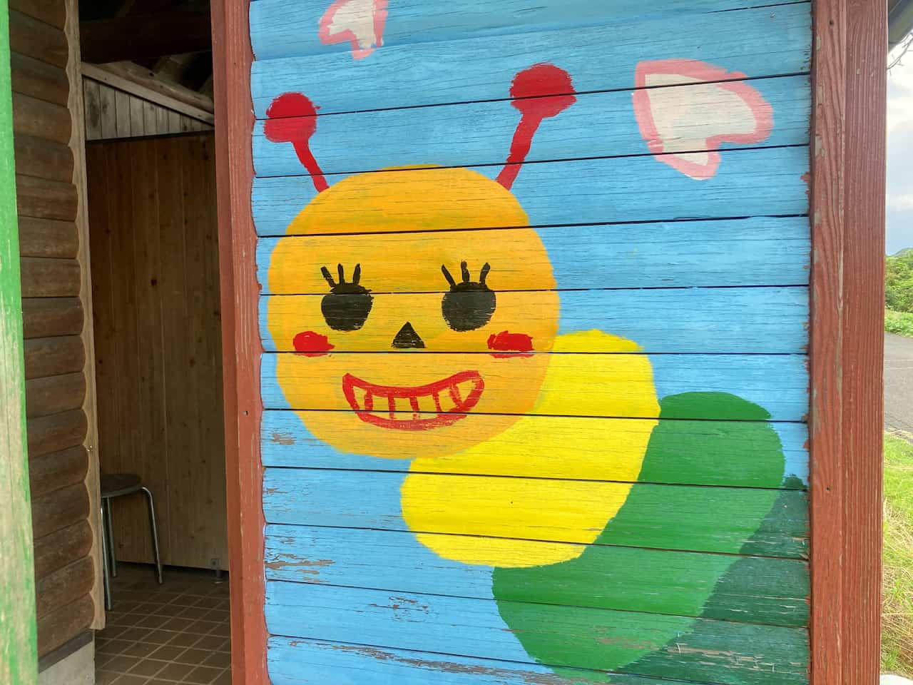 イモムシがひと文字ずつ形を作る“ワクワクトイレ”。