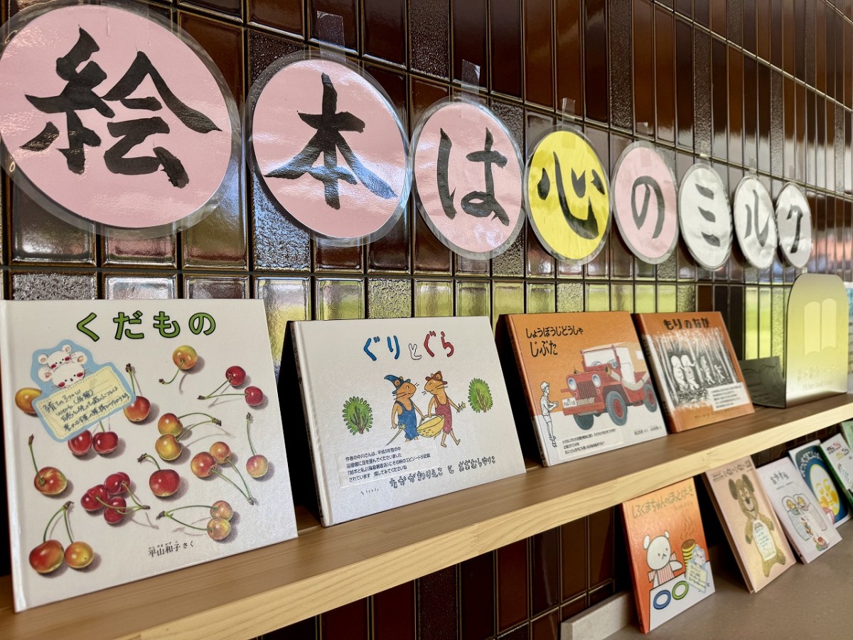 休憩スペースの棚には、自由に読める絵本も。