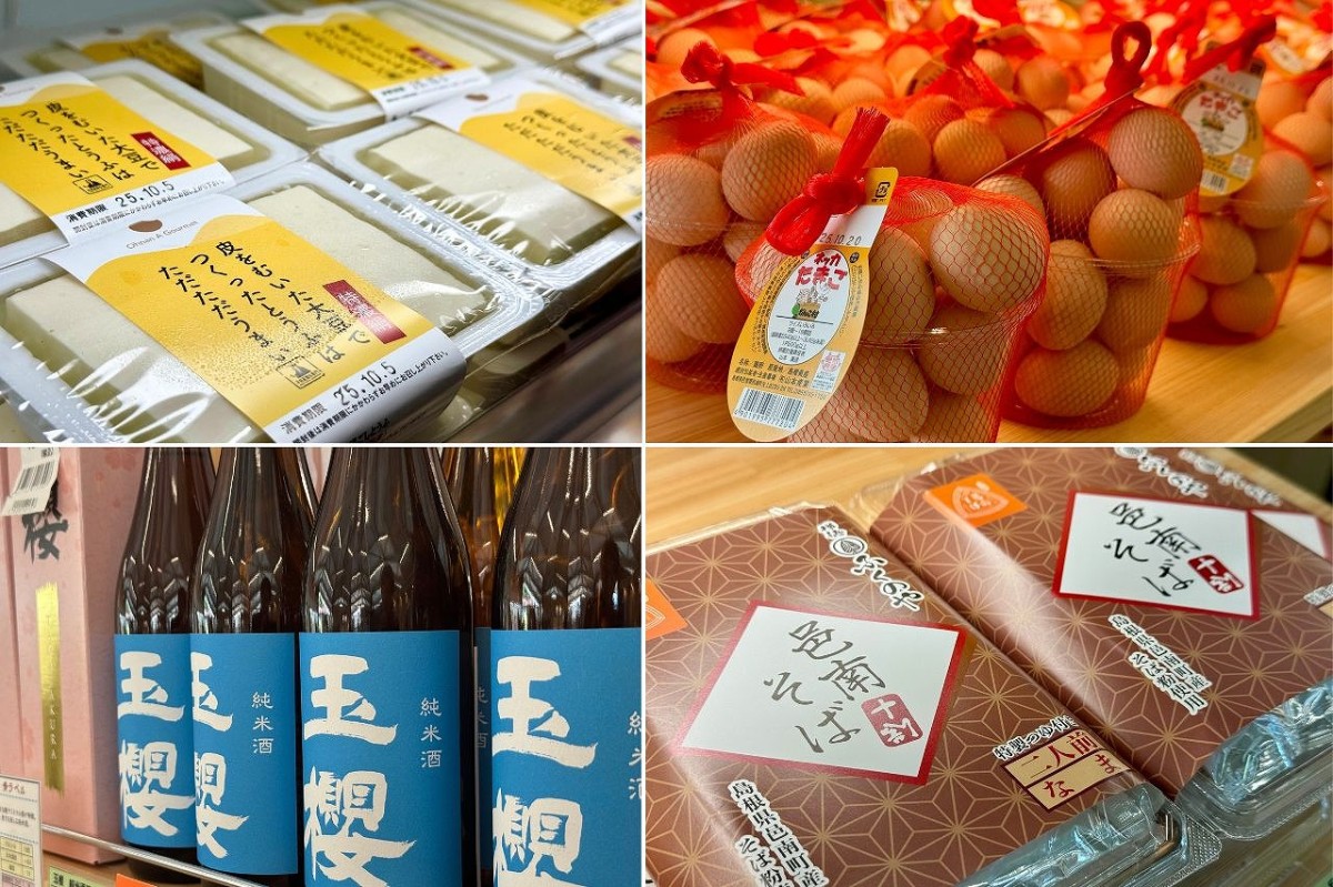 産直市には、町内から毎朝届く新鮮な野菜や果物がずらり!地元企業などが手掛ける加工品もたくさん並んでいます。