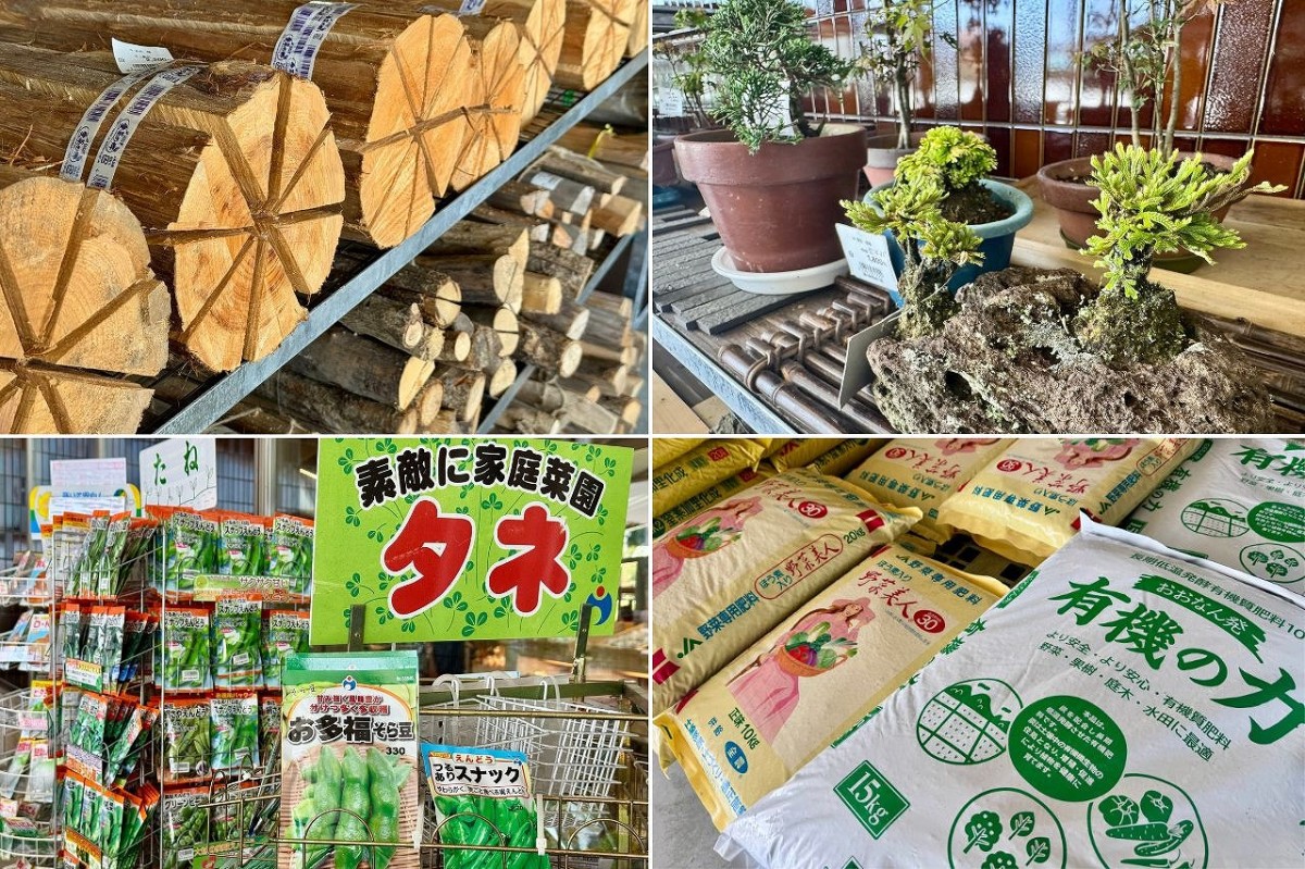 駅構内の入口付近には、木材、盆栽、家庭菜園のタネ、肥料まで陳列されていました。