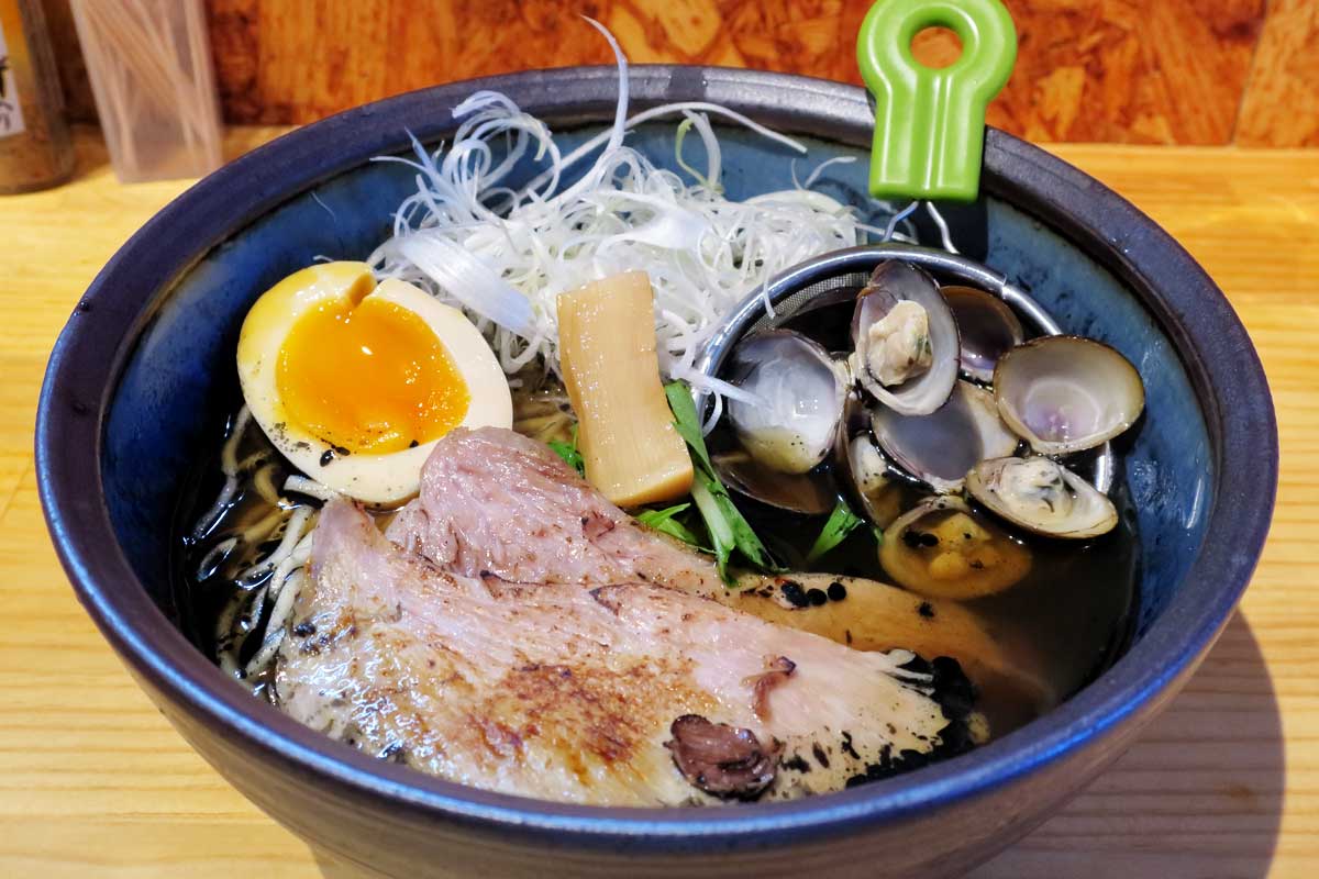 スープはカツオベースの魚介出汁と、シジミの滋味が重なり、奥深いコクとやさしいうま味が広がります。