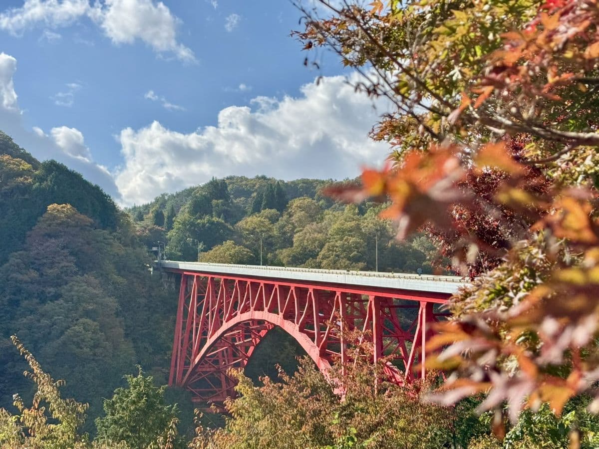 三井野大橋と紅葉と木次線。深呼吸がはかどる名所『道の駅奥出雲おろちループ』周辺の紅葉が見ごろ