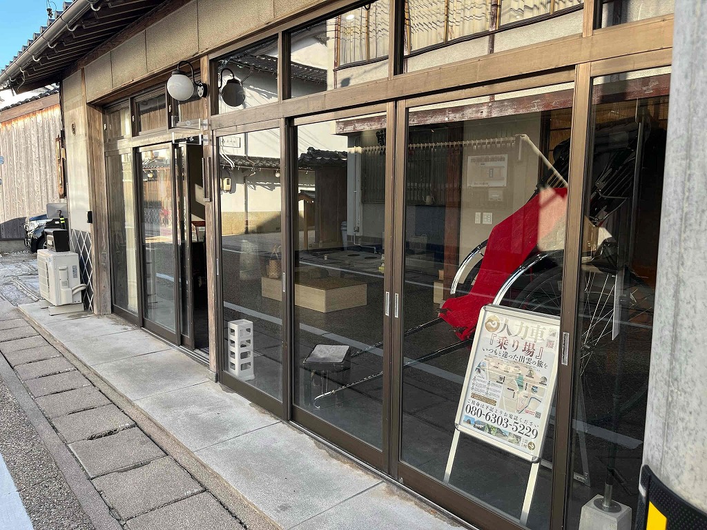 運営は『雲州人力社中』。土間には本物の人力車が!