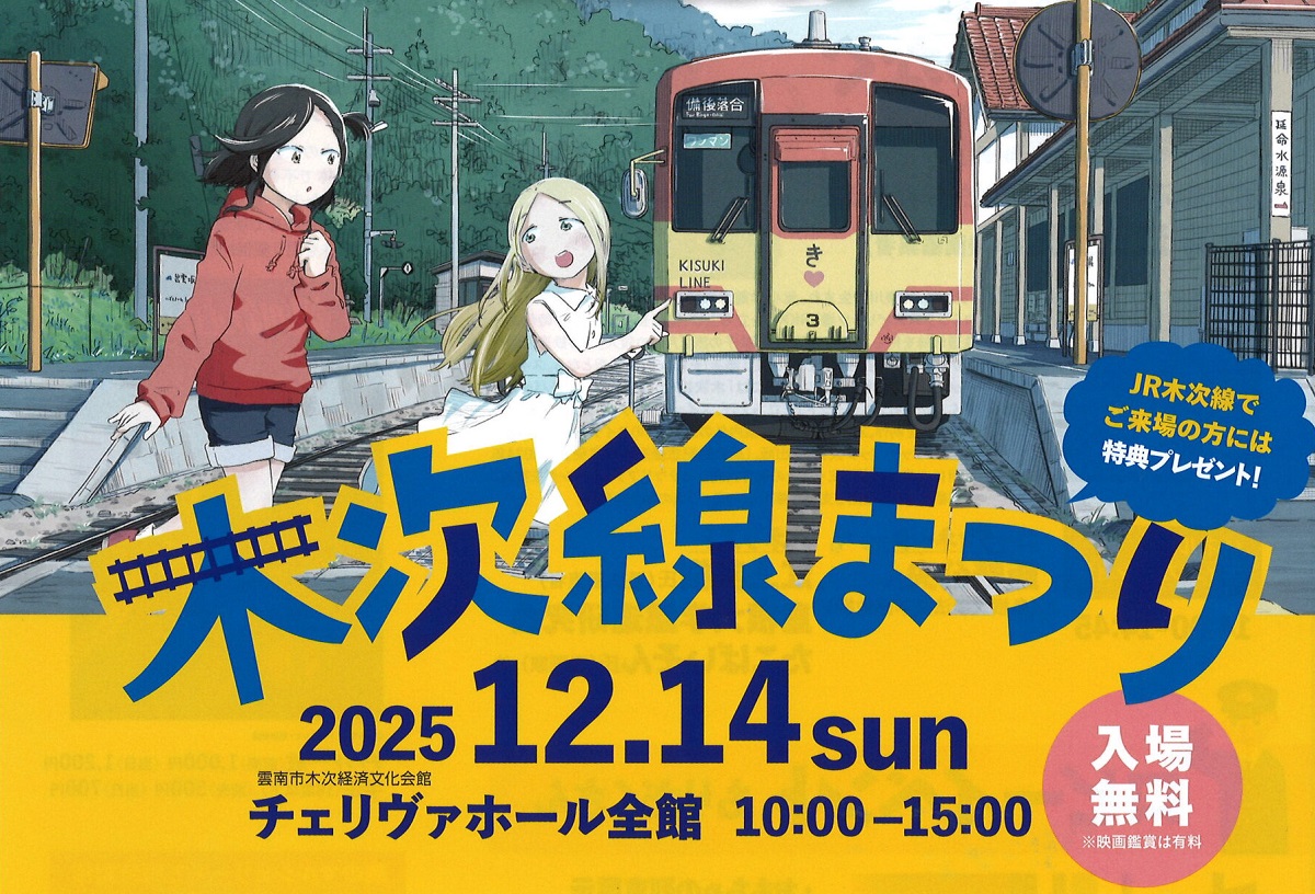 | ざっくり内容 | 「木次線応援コミックスの完成発表会」をはじめ、 ロビーイベントでは、おもちゃ列車展示や鉄道グッズ販売、缶バッチ製作など盛りだくさん。 JR木次線を利用して来場した方には、特典プレゼントもあります! また、13・14日の2日間は、「第34回しまね映画祭2025」を同時開催。 |