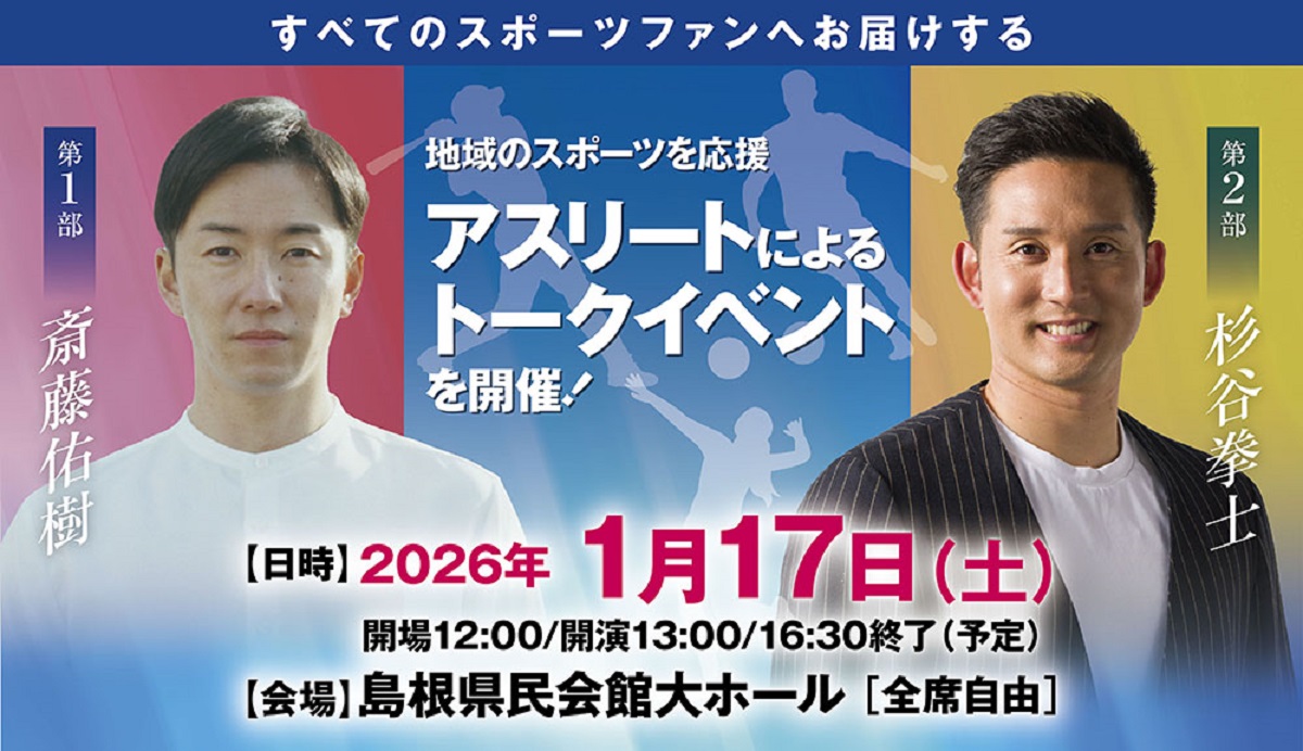 詳細 斎藤佑樹・杉谷拳士アスリートトークイベント(島根県松江市)の開催情報