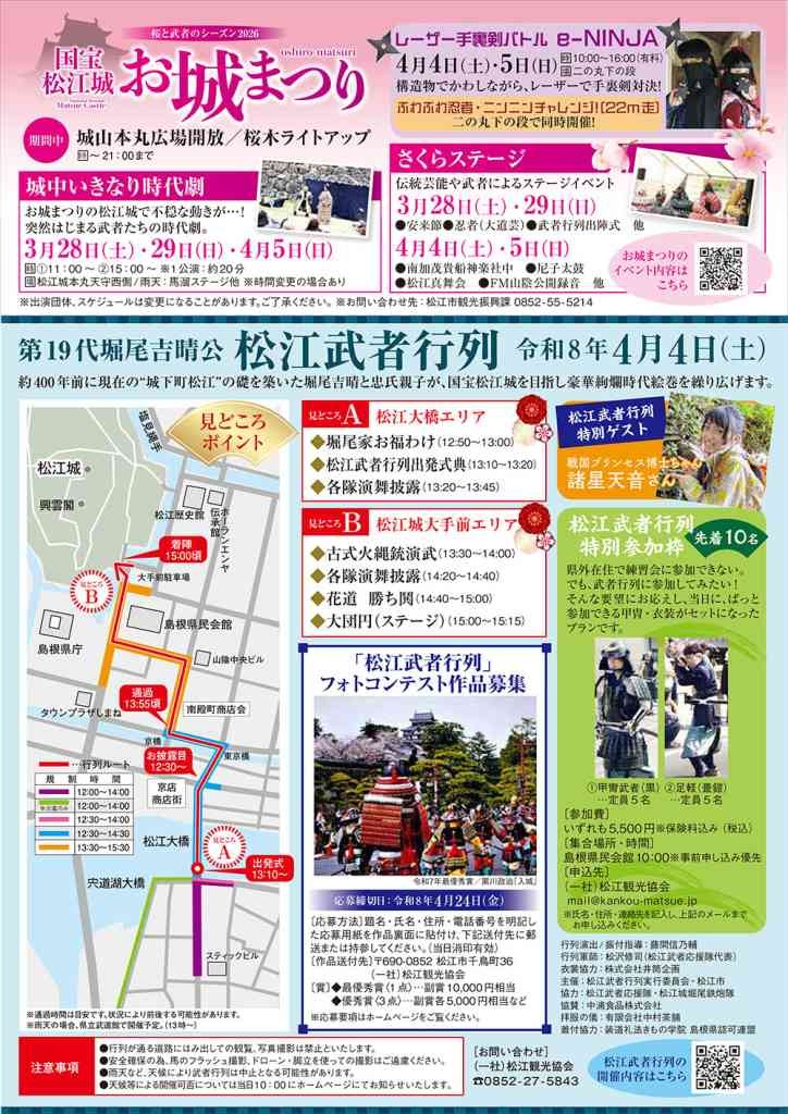 詳細 国宝松江城お城まつり~桜と武者のシーズン2026~(島根県松江市)の開催情報