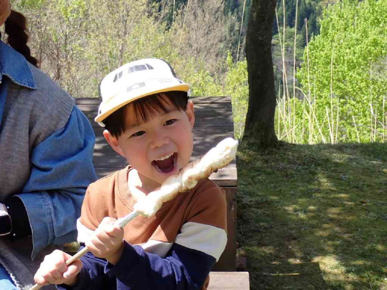 | ざっくり内容 | 竹串にパン生地をくるくる巻いて炭火で焼きましょう。 |
