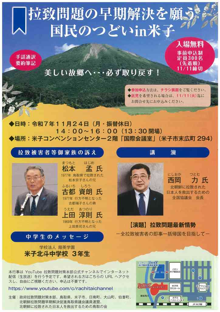 【要予約】拉致問題の早期解決を願う国民のつどいin米子