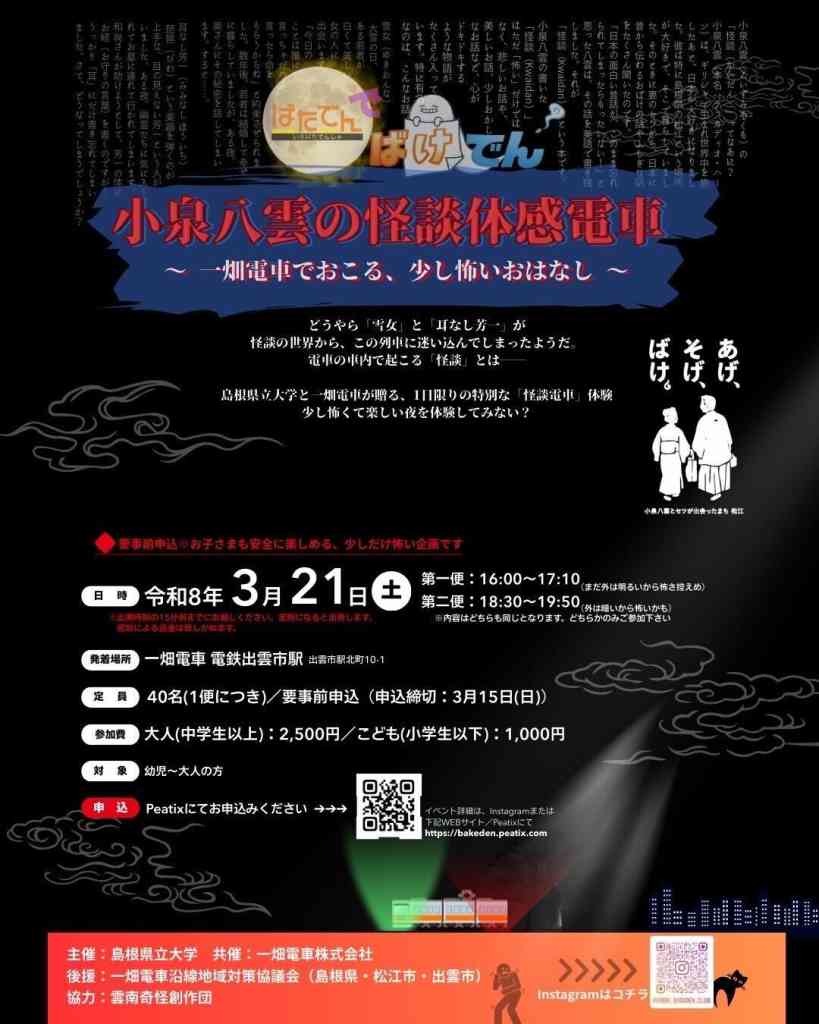 【要予約】ばけでん「小泉八雲の怪談体感電車」~一畑電車でおこる、少し怖いおはなし~