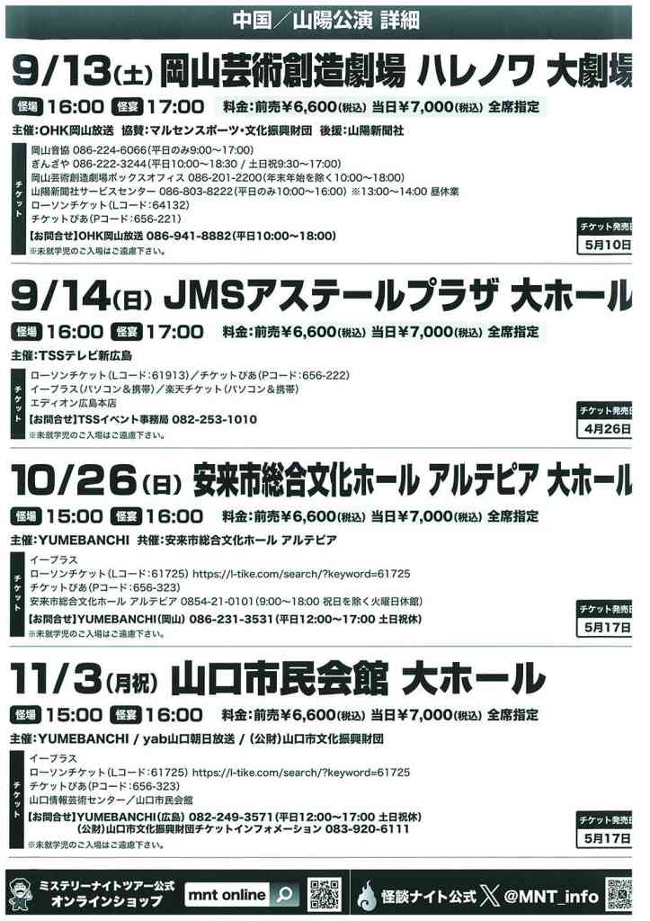 電話 | 086-231-3531(夢番地(岡山))/0854-21-0101(安来市総合文化ホール アルテピア) |