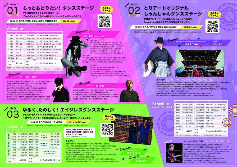 出演希望者でチームを組み、2月22日のダンス公演で発表。公演までに練習会を複数回開催。参加1000円。下記の3つのステージをつくる。