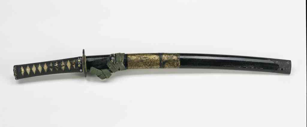 写真②:金唐皮青貝微塵塗鞘脇指拵(きんからかわ あおがいみじんぬりさや わきざしこしらえ)