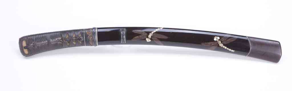 写真③:黒呂塗勝虫図鮫研出合口拵(くろろぬり かつむしず さめとぎだし あいくちこしらえ)