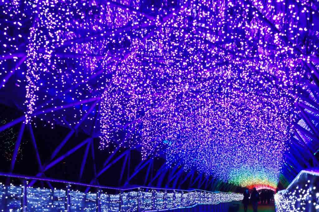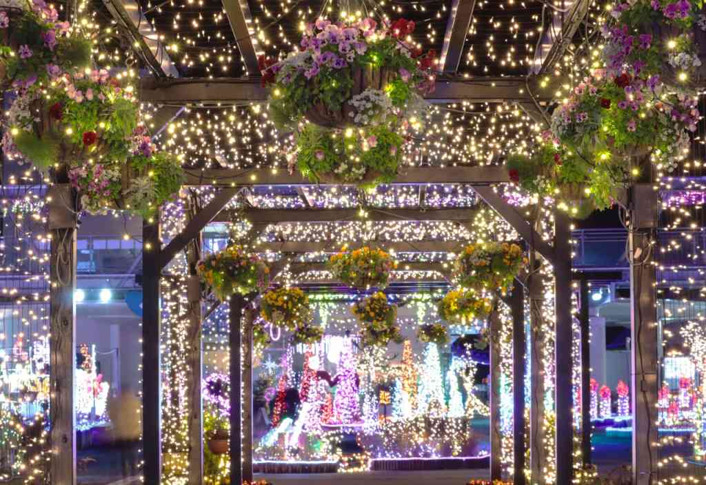 フラワーイルミネーション2025。100万球の光と花の共演で園内各所を鮮やかに彩る。七色に輝く光のトンネルや霧とのコラボが楽しめる庭園などスタッフオリジナルデザインのイルミネーションをお届け。また、毎年大人気の花回廊冬花火も週末を中心に開催。花火とイルミネーションの共演は迫力満点!