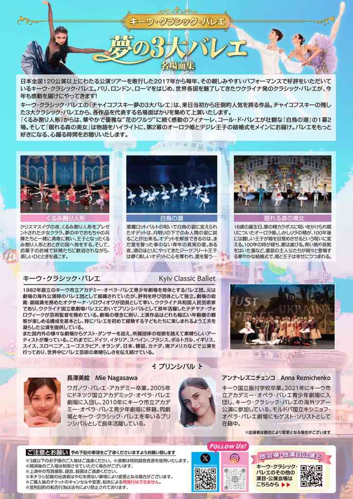 「夢の3大バレエ」は、圧倒的人気を誇るプログラムで、チャイコフスキーの残した3大クラシック・バレエから、各作品を代表する名場面ばかりを集めた。