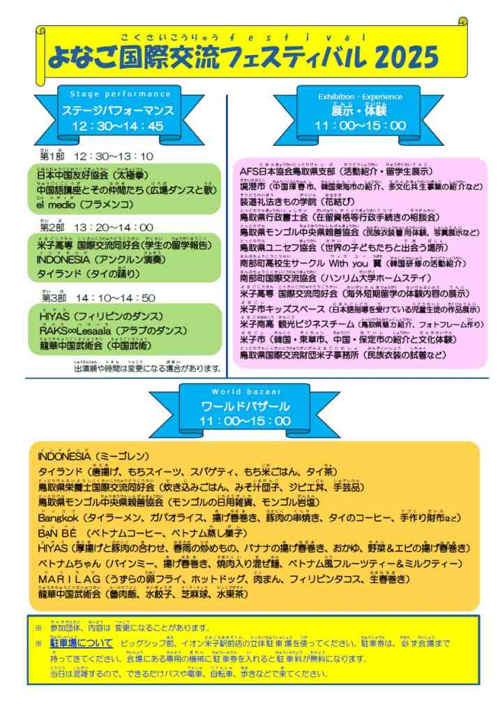 | お問い合わせ | よなご国際交流フェスティバル実行委員会事務局 |