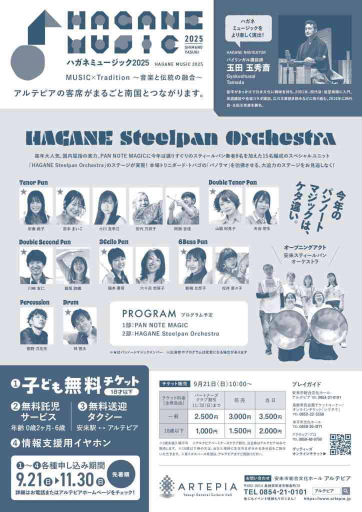 さらに、オープニングアクトとして安来市内で活動する「安来スティールパンオーケストラ」も登場。