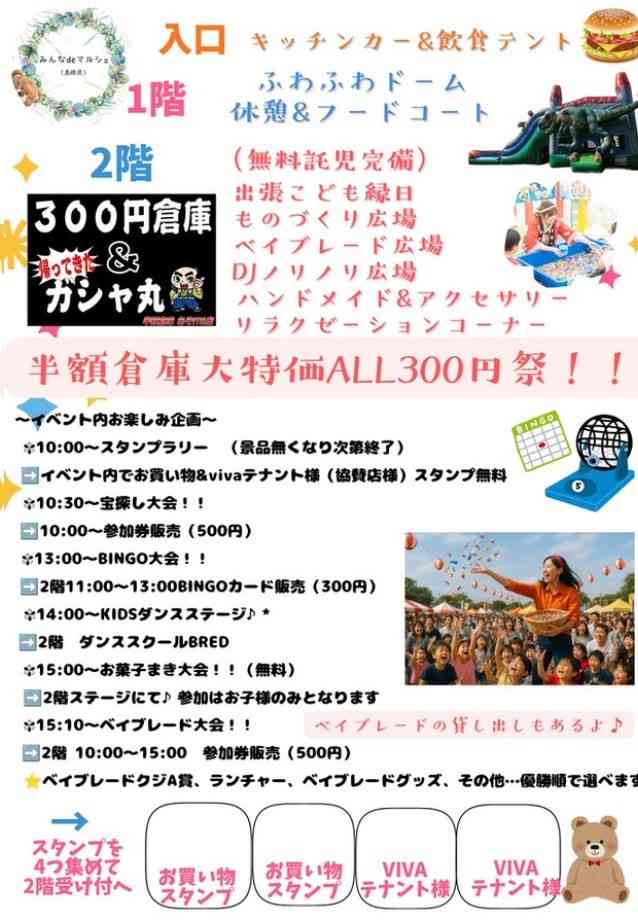 ふわふわドームに出張こども縁日、スタンプラリーや宝探し、ビンゴ大会などなど。お楽しみ盛りだくさんな一日。