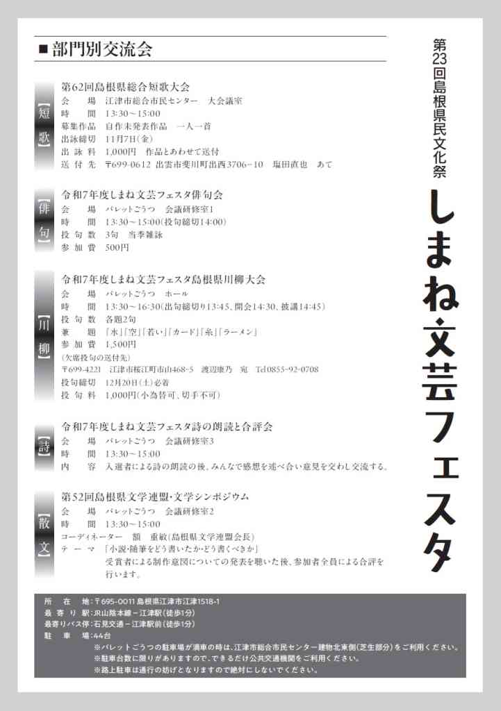 第23回島根県民文化祭「令和7年度しまね文芸フェスタ」