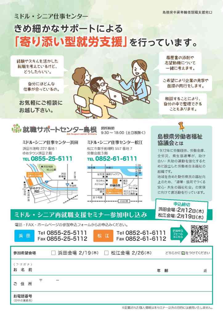 ミドル・シニア世代を対象とした就職活動の進め方、応募書類(履歴書等)の書き方、面接対策等セミナー。