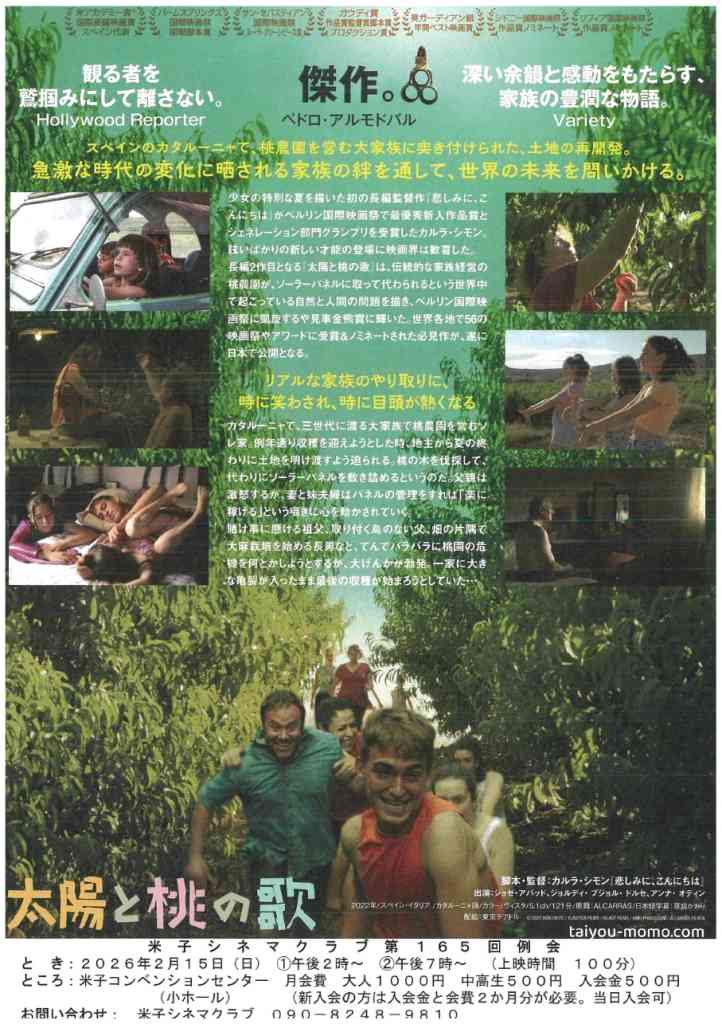 今回は、第72回ベルリン国際映画祭金熊賞(最高賞)を受賞した「太陽と桃の歌」を上映する。