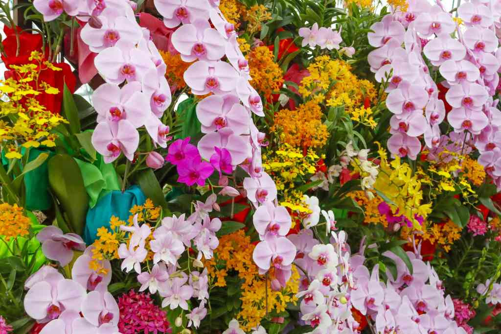 色とりどりのランの華やかな香りと雰囲気に囲まれて
